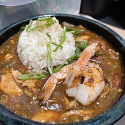 Came in on Thursday afternoon. Didn't have too many patrons. But that's to be expected in the middle of the day. We were promptly greeted and advised to take a seat anywhere. We ordered the chicken wings, gumbo, and ribs. I felt the wings could have used a little bit more seasoning. I definitely ate the jalapeños that were with it to give it more of an umph. The gumbo was great. Although they had sprinkled a little too much seasoning over the rice. No idea what it was but it was a little over powering. But over all good gumbo. Had chunks of chicken, sausage and shrimp. Had a side of potato salad which was pretty standard and a piece of cornbread. Bread was slightly dry, as it crumbled every time I put my fork to it to take a bite. My friend ordered the ribs with a side of rice and she said they were tasty. Can't speak much on it but she devoured her plate so I take that as a good sign